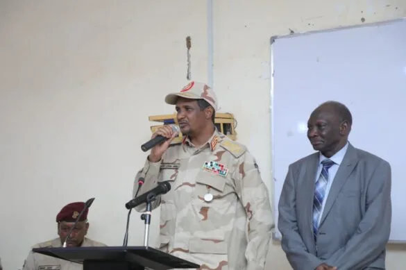 وقال الفريق أول دقلو شكرا جزيلاً لحفاوة الاستقبال وحسن الضيافة، رغم المرارات وجدناكم متعايشين مع بعض وكلنا نعم ان لديكم أكبر عدد من النازحين نرجو العمل معا للمساهمة في عودتهم، وأرجو منكم اقناع الأخ عبدالواحد محمد أحمد نور بالعودة إلى أرض الوطن والمشاركة في عملية الحوار للوصول إلى سلام دائم يحقق الأمن والاستقرار للمواطنين.