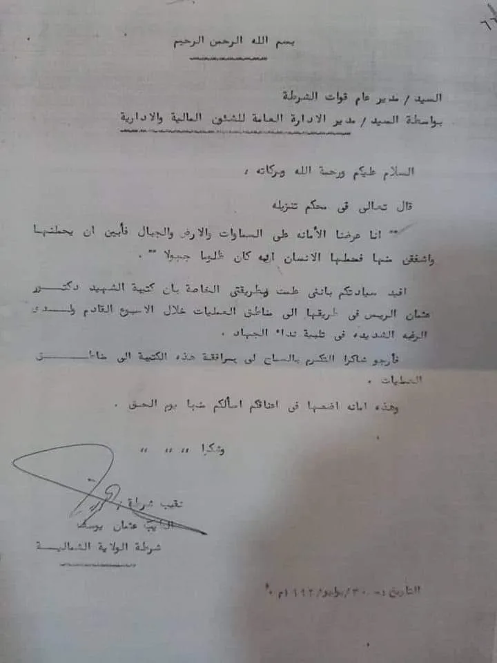 تداولت وسائل التواصل الاجتماعي مستندات خطيرا في مواجهة الرائد معاش الطيب عثمان يوسف امين عام لجنة تفكيك النظام السابق ووالد الفتاة التي تم اختطافها ومحاولة اغتصابها الاسبوع الماضي ،والمستند يوضح أن الرجل كان من الكوادر الجهادية