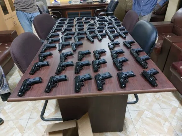 مدير إدارة مكافحة التهريب ولاية شمال كردفان العقيد سلام الشيخ أوضح إنه و إثر معلومات دقيقة توفرت لقواته والتي بموجبها تم ضبط عربة دفار تحمل عدد (65) طبنجة عند المدخل الشمالي لمدينه الأبيض مخبأة داخل إدراج الدفار (جامبو) بالإضافة الى وجود بضائع اخرى ممنوعة بالعربة، مبيناً إتخاذ كافة الإجراءات القانونية اللازمة تجاه المضبوطات والمتهمين.