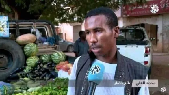 في واحدة من اغبى تصرفات الإعلام المصنوع لمليشيا الجنجويد تنكر هذا الجندي في زي بائع خضار ليدلي بافادة  أن الأوضاع ممتازة وان الشارع قد تقبل قواتهم ويبيع ويشتري معها