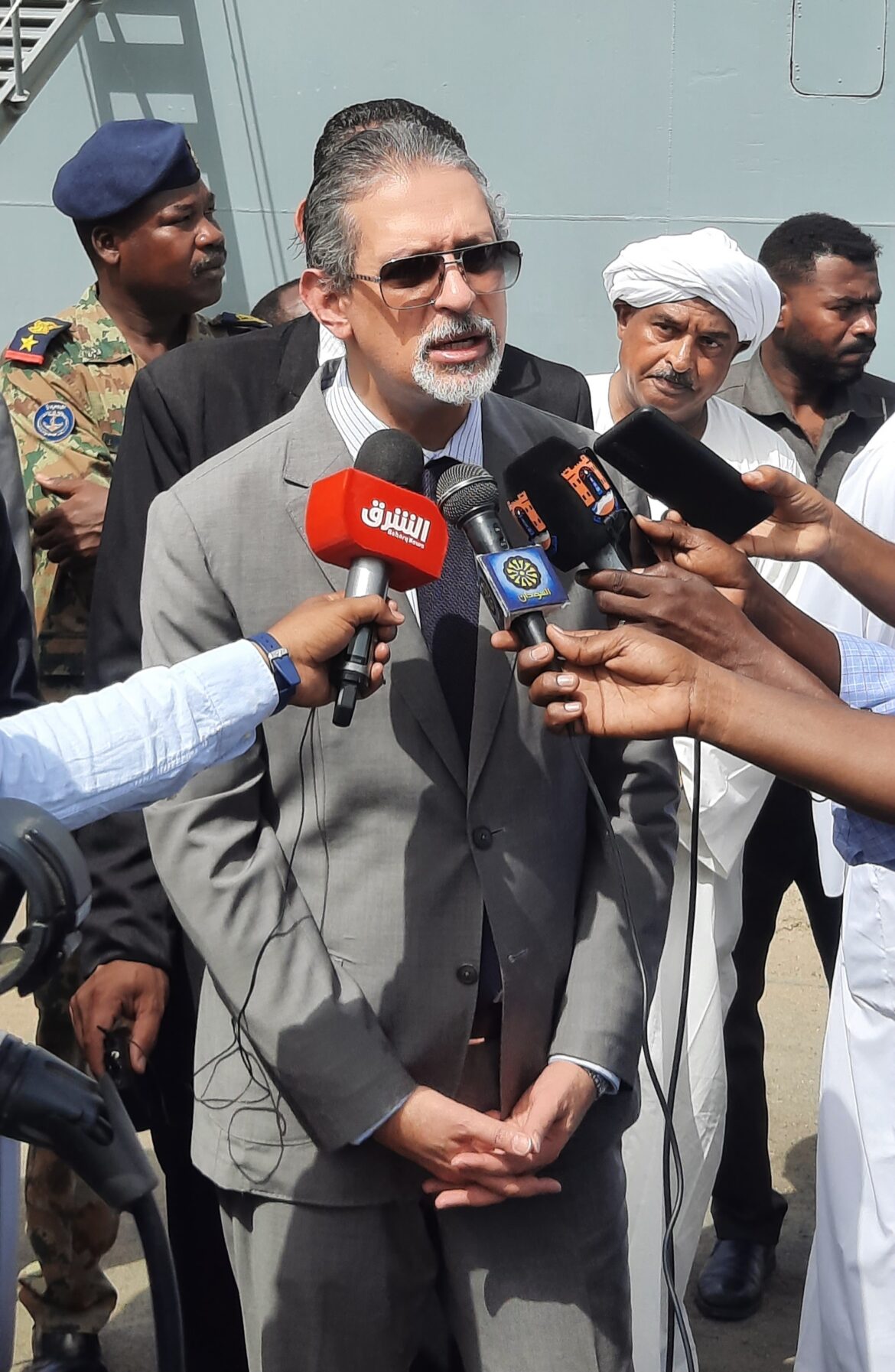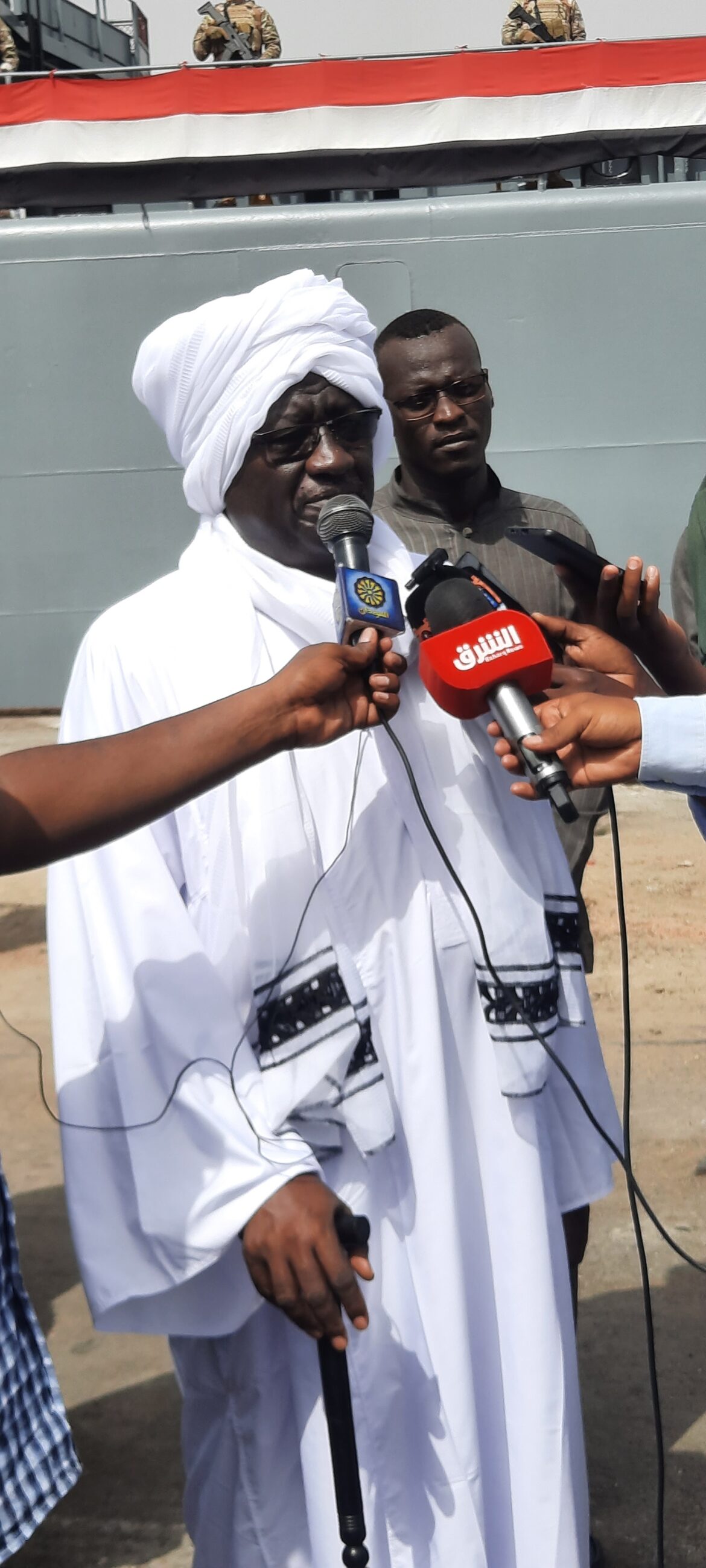 إستقبل وزير التنمية الإجتماعية الإتحادي الأستاذ أدم بخيت بمعية والي ولاية البحر الأحمر المكلف الأستاذ فتح الله الحاج احمد بميناء بورتسودان اليوم سفينة مساعدات طبية وغذائية وإيوائية متكامله من جمهوريةمصرالعربية وذلك بحضور قائد منطقة البحر الأحمر العسكرية اللواء ركن محمد عثمان حمد، ومدير عام قطاع الصحة بالولاية دكتورابراهيم ملك الناصر، ومعالي السفير جمهوريةمصرالعربية بالسودان هاني صلاح ومعالي القنصل العام ببورتسودان سامح فاروق، والهلال الأحمر السوداني والجهات ذات الصلة.